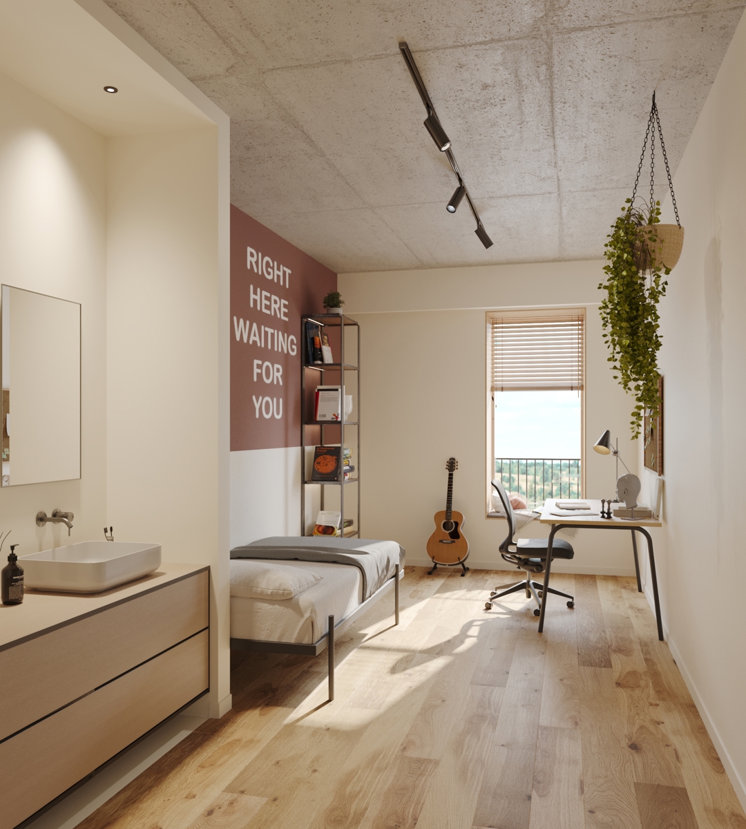 Altro Projects verkoopt een nieuw studentenhuisvestingsproject in Gent - Kotter - gelegen op de Ottergemsesteenweg vlakbij het UZ Gent. Kotter is een modern en comfortabel studentencomplex in Gent, ideaal gelegen en goed bereikbaar. Het project biedt 126 studentenkamers met een huiselijke sfeer en focus op gezelligheid, comfort en veiligheid. De 12 gemeenschappelijke ruimtes stimuleren sociale interactie en een hechte gemeenschap.