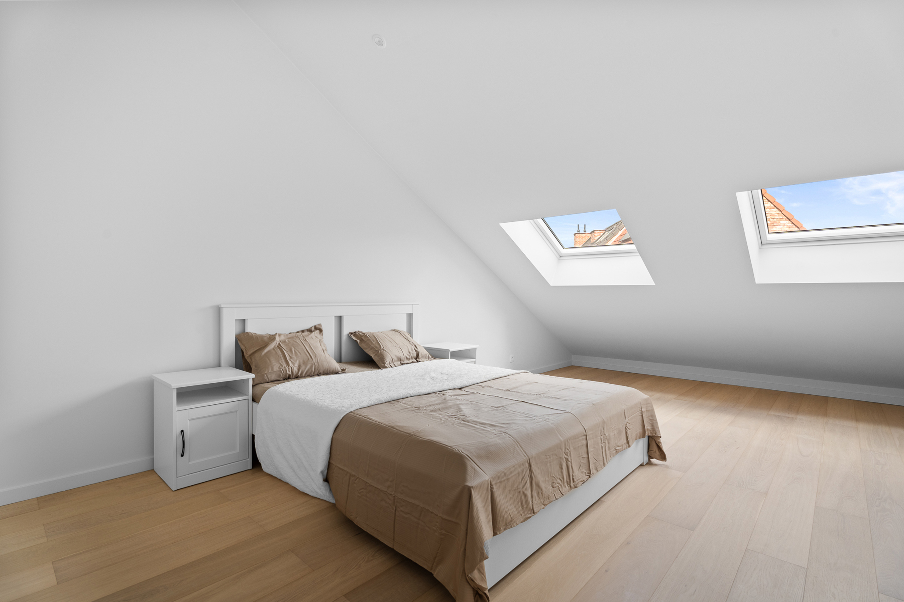 Op de eerste verdieping bevinden zich drie volwaardige slaapkamers en een centrale badkamer met zowel bad als douche, ideaal voor het hele gezin. De dakverdieping verrast met een polyvalente ruimte, extra toilet en een charmante vierde slaapkamer die perfect kan dienen als master bedroom, bureau of hobbyruimte.